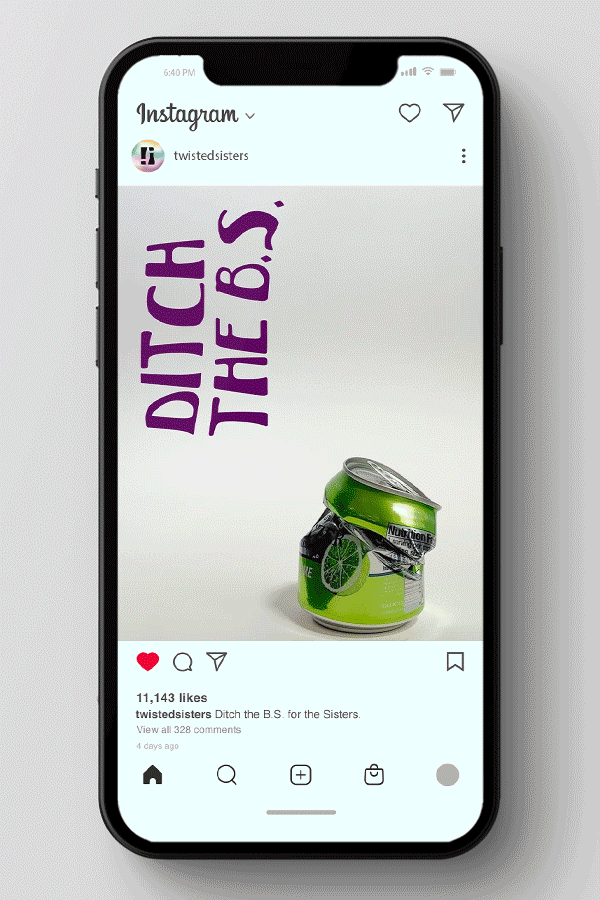Twisted Sisters is a funky concept kombucha company that is focused on promoting personal well-being in a new, refreshing way. Their kombucha is geared towards health enthusiasts wanting delicious fizzy drinks without sacrificing quality and nutrition. This branding project includes four key elements: a brand guideline book, packaging, a website, and three forms of advertisement. The three forms used are an Instagram ad, a guerilla installation, and a Youtube ad.